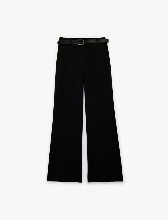 Straight Fit Cepli Düz Bol Paça Kemerli Kumaş Pantolon Sepete Ekle