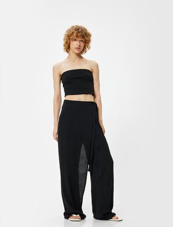 Kruvaze Detaylı Bol Paça Pantolon Aerobin Kumaş
