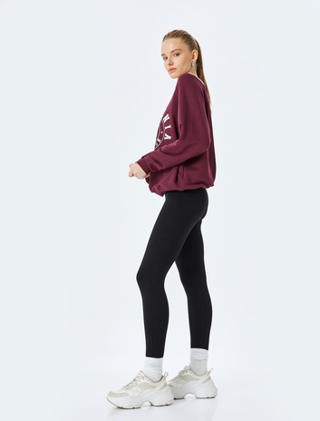 Slim Fit Slogan Baskılı Spor Tayt