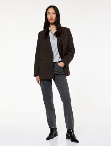 Yüksek Bel Kot Pantolon Düz Paça Düğmeli Pamuklu - Slim Straight Fit Jean