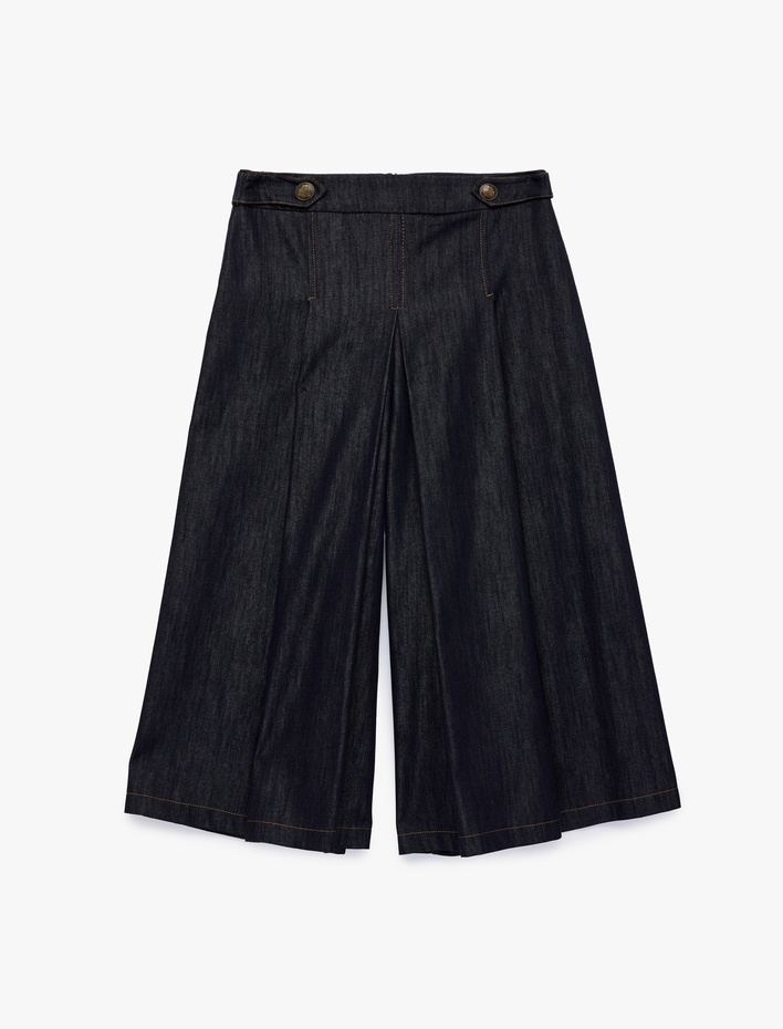 Pile Detaylı Diz Altı Denim Bermuda Şort Sepete Ekle