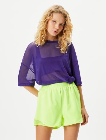 Tül Spor Tişört Oversize Kısa Kollu Bisiklet Yaka Sepete Ekle