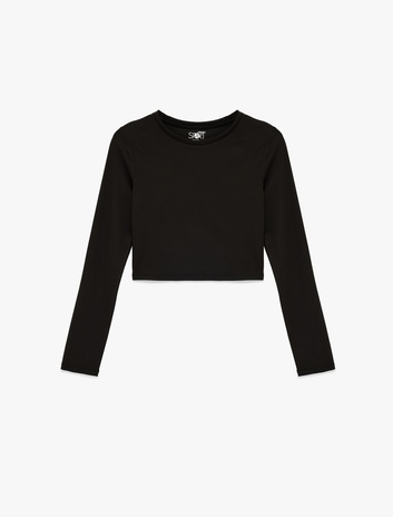 Sırt Detaylı Uzun Kollu Crop U Yaka Spor Tişört