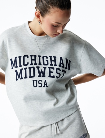 Kısa Kollu Bisiklet Yaka Oversize Spor Sweatshirt Sepete Ekle