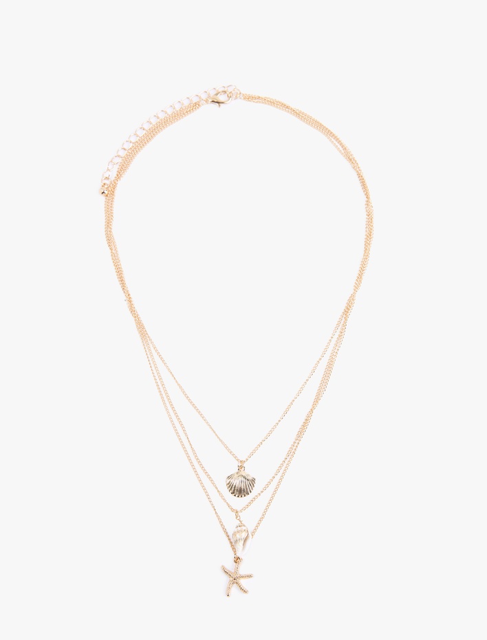 Taş Detaylı 3 Sıra Çelik Deniz Kabuğu Kolye Sepete Ekle