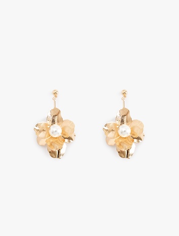 İnci Detaylı Büyük Boy Sallantılı Çelik Çiçek Küpe Sepete Ekle