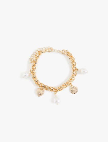 Kadın İnci Boncuk Detaylı Zincir Bileklik Seti