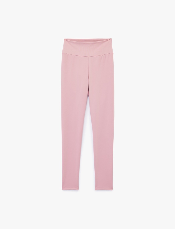 Yüksek Bel Slim Fit İnterlok Spor Tayt