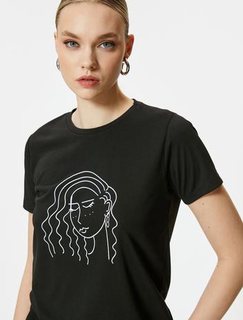 Kısa Kollu Tişört Bisiklet Yaka Nakışlı Pamuklu Sepete Ekle