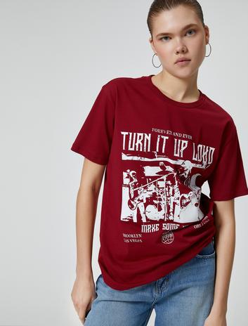 Baskılı Tişört Kısa Kollu Bisiklet Yaka Pamuklu