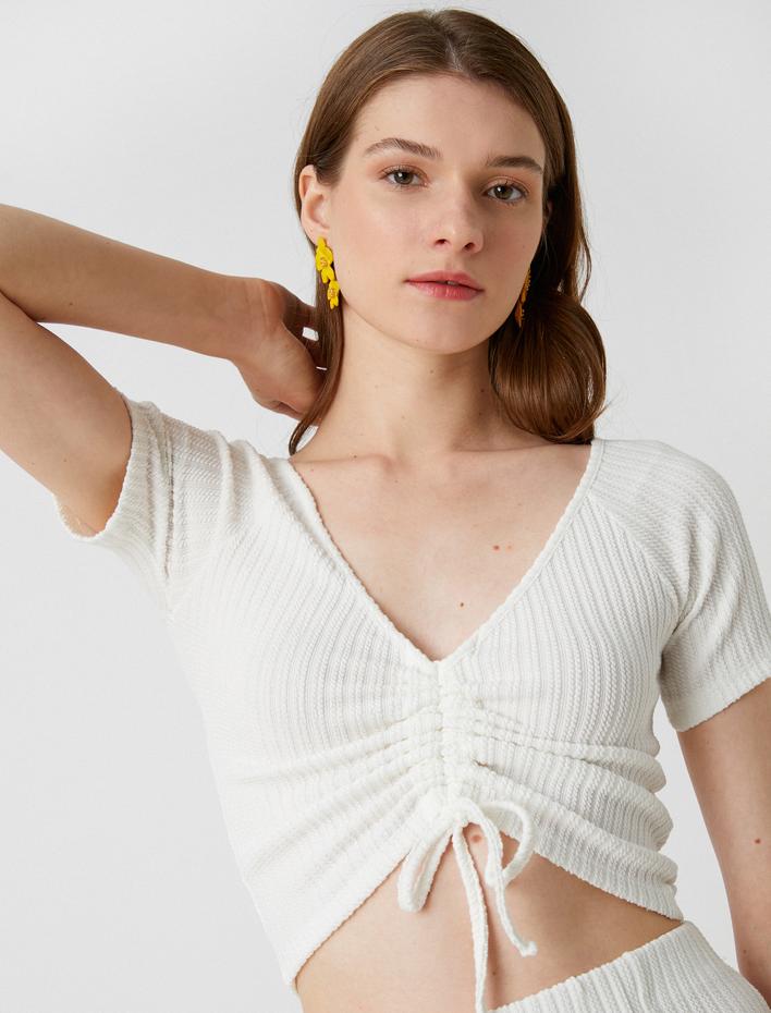 Crop Tişört Büzgülü V Yaka Sepete Ekle