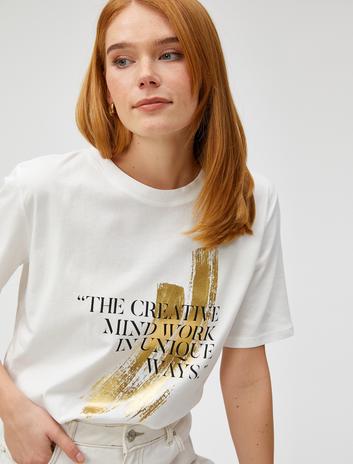 Baskılı Tişört Bisiklet Yaka Kısa Kollu Pamuklu