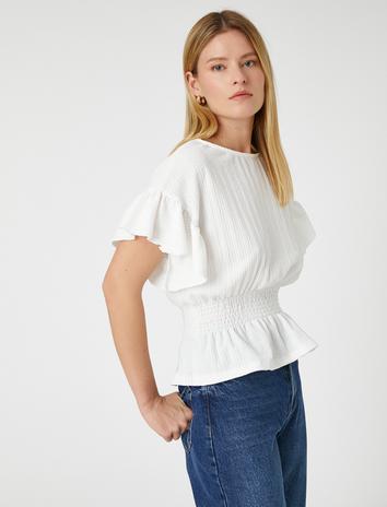 Gipeli Volanlı Tişört Kayık Yaka Sepete Ekle