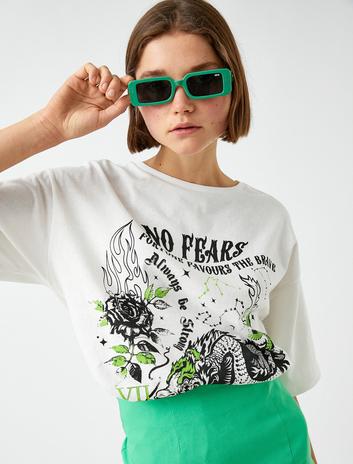 Koton X Şahika Ercümen - Yazı Baskılı Crop Tişört