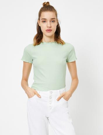 Fırfır Detaylı Kısa Kollu Tişört