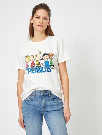 Snoopy Baskılı Lisanslı Pullu Kısa Kollu Tişört Sepete Ekle