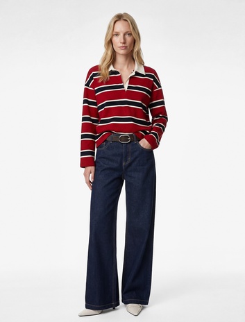 Regular Fit Uzun Kollu Pamuklu Polo Yaka Çizgili Tişört