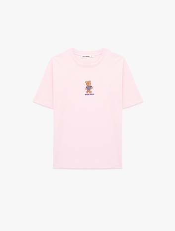 Rahat Kalıp Kısa Kollu Bisiklet Yaka Baskılı Pamuklu Ayıcıklı Tişört Sepete Ekle