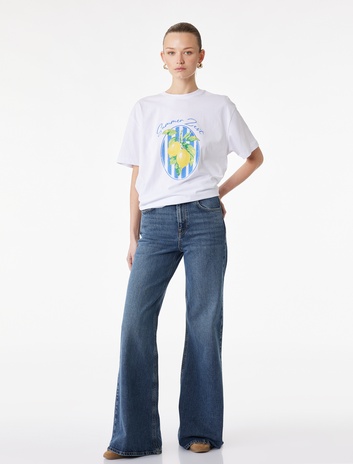 Pamuklu Kısa Kollu Bisiklet Yaka Limon Baskılı Tişört Sepete Ekle