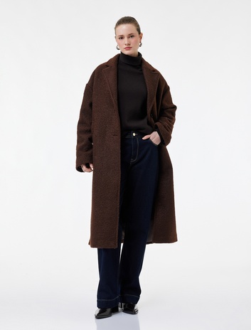 Koton X Melis Ağazat - Uzun Kollu Düğmeli Cepli Buklet Kaban