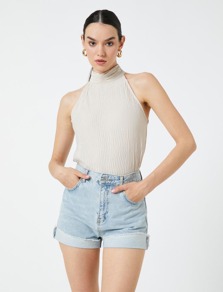 Halter Yaka Dokulu Bluz Sepete Ekle