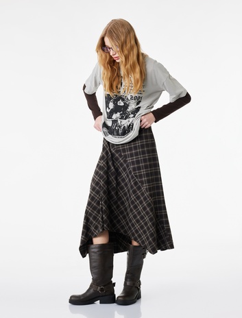 Ekoseli Yırtmaç Detaylı A Kesim Uzun Etek Sepete Ekle