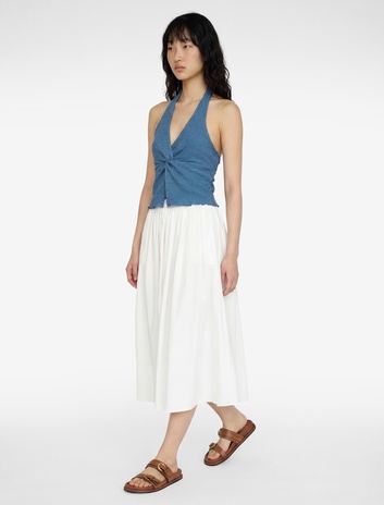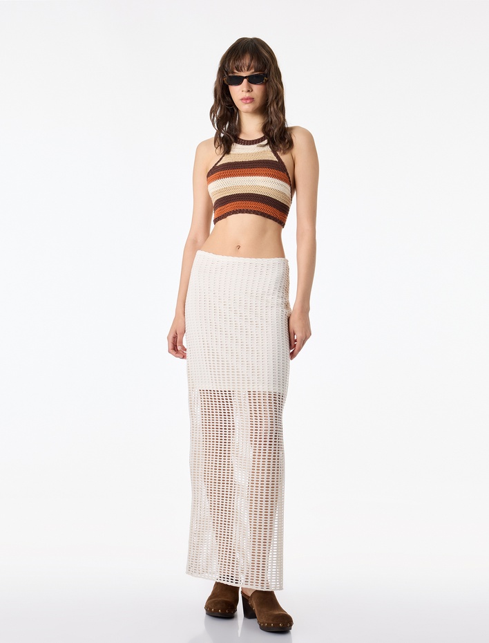 Denim modellerin de oldukça trend olduğu uzun etek tasarımlarında açık ve koyu mavi tasarımlardan da bahsetmezsek olmaz. Baştan sona denim kombinler yaratmak için doğru bir tercih olan maksi etek modellerini denim gömlekler, denim crop yelekler veya denim toplarla tamamlayabilirsiniz.