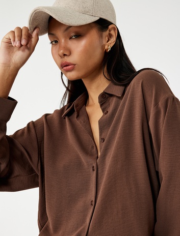 Aerobin Kumaş Düğmeli Klasik Yaka Uzun Kollu Oversize Gömlek