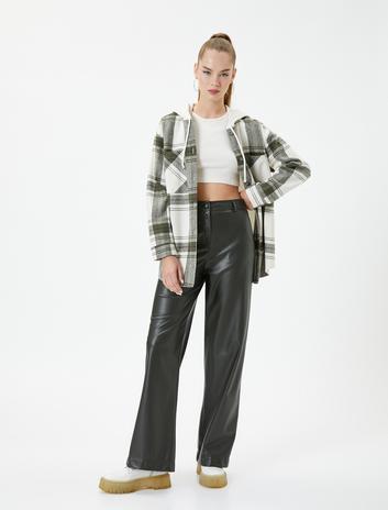 Kapşonlu Oduncu Gömlek Cep Detaylı Yumuşak Dokulu Uzun Kollu