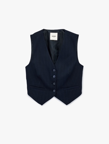 Düğmeli V Yaka Crop Çizgili Blazer Yelek