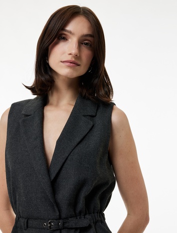 Koton X Melis Ağazat - Rahat Kalıp Kruvaze Bağlama Detaylı Yelek