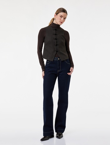Kolsuz Metal Aksesuarlı Düğmeli Asimetrik Kruvaze Yaka Yelek