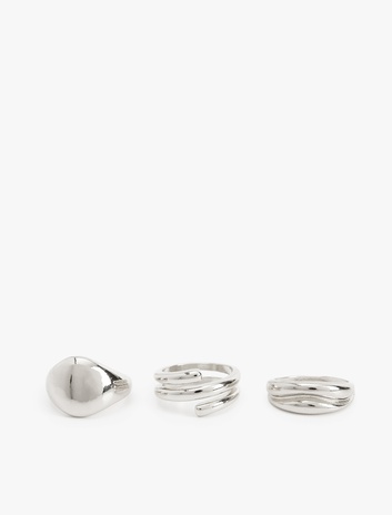 Bu sezon farklı şekillerdeki yüzük modelleri aynı kombinlerde biraraya geliyor, gümüş yüzük ve altın yüzük tonları birlikte kullanılıyor. Başparmağı ve küçük parmaklarda kullanılan yüzük modelleri büyük manşet bilekliklerle şık kombinler yaratıyor. Koton aksesuar koleksiyonu içerisinde yer alan yüzük tasarımları tekli ve çoklu paketlerle sunuluyor.