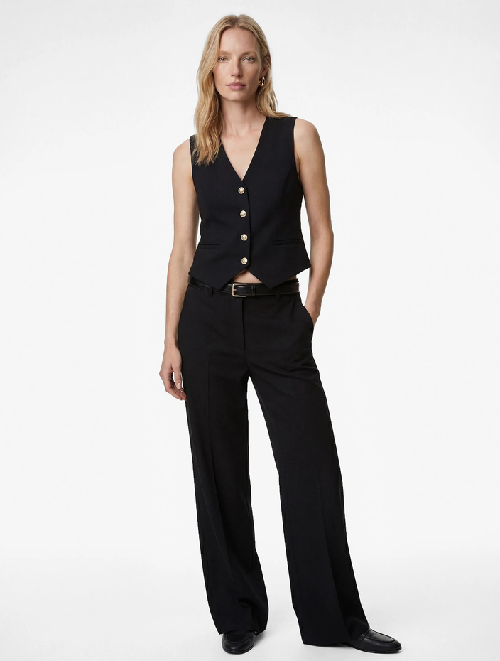 Kolsuz Metal Aksesuarlı Asimetrik Kruvaze Yaka Yelek