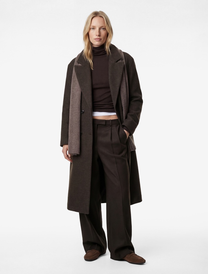 Kruvaze Oversize Uzun Kaşe Kaban