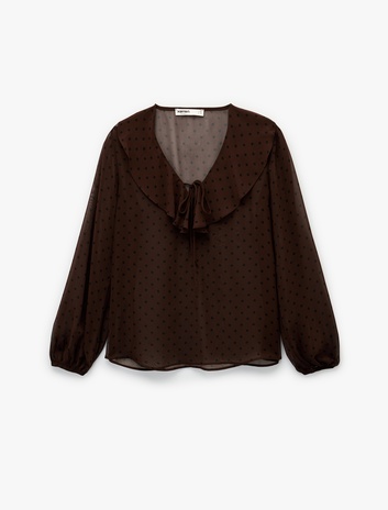 Uzun Kollu Fırfırlı Yaka Volanlı Puantiyeli Bluz