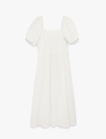 Pamuklu Kare Yaka Kısa Balon Kollu Midi Elbise Sepete Ekle