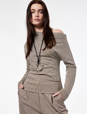 Koton X Şahika Ercümen - Slim Fit Uzun Kollu Asimetrik Yaka Açık Omuz Bluz Sepete Ekle