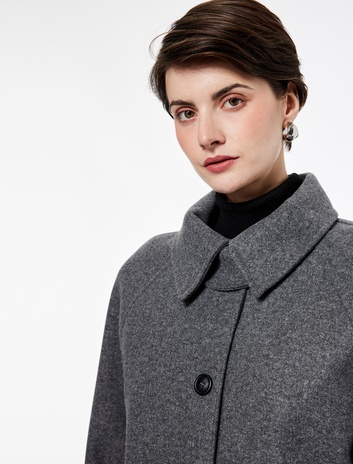 Cepli Düğmeli Kruvaze Uzun Kollu Kısa Kaşe Kaban