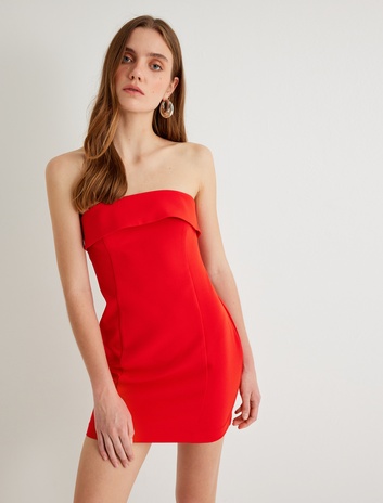Mini Straplez Elbise Kat Detaylı Sepete Ekle
