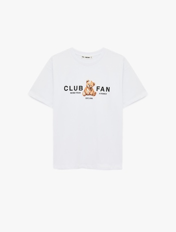 Kısa Kollu Bisiklet Yaka Pamuklu Ayıcık Baskılı Oversize Tişört Sepete Ekle