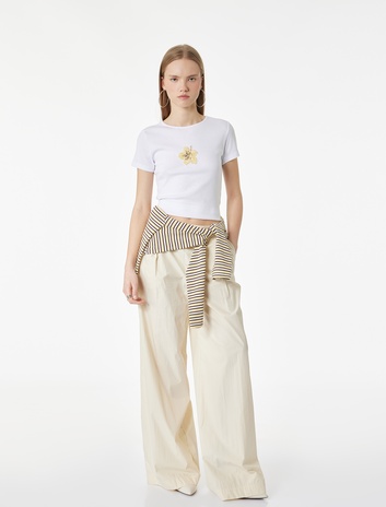 Yandan Kapak Detaylı Bol Paça Pantolon Bağlamalı Aerobin Kumaş