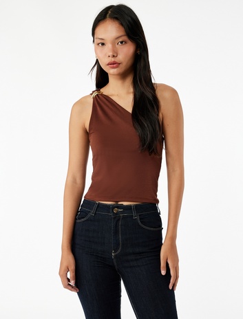 Metal Aksesuarlı Slim Fit Tek Omuz Kolsuz Bluz
