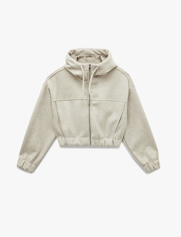 Kapüşonlu Uzun Kollu Fermuarlı Crop Ceket Sepete Ekle