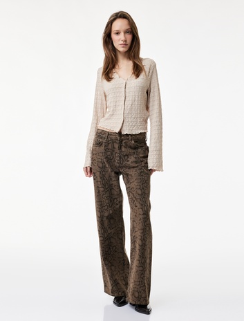 Dokulu Yüksek Bel Bol Paça Pantolon