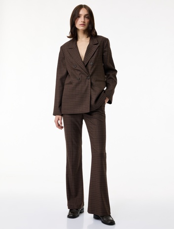 Koton X Sima Tarkan - Pileli Cepli Geniş Paça Ekose Kumaş Pantolon
