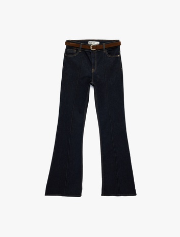 Pamuklu Kemerli İspanyol Paça Dar Kesim Denim Pantolon - Flare Jeans Sepete Ekle