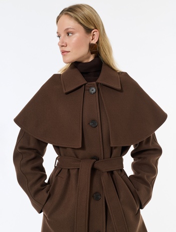 Pelerin Yaka Kaban Kaşe Kemerli Cepli Düğmeli Uzun Kollu Sepete Ekle