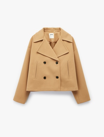 Kısa Kaban Kaşe Düğmeli Cepli Uzun Kollu Kruvaze Sepete Ekle