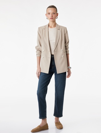 Koton X Şahika Ercümen - Uzun Kollu Koyun Yünü Karışımlı Blazer Ceket Sepete Ekle